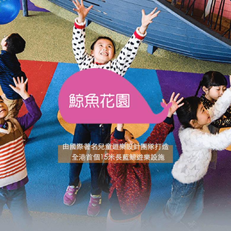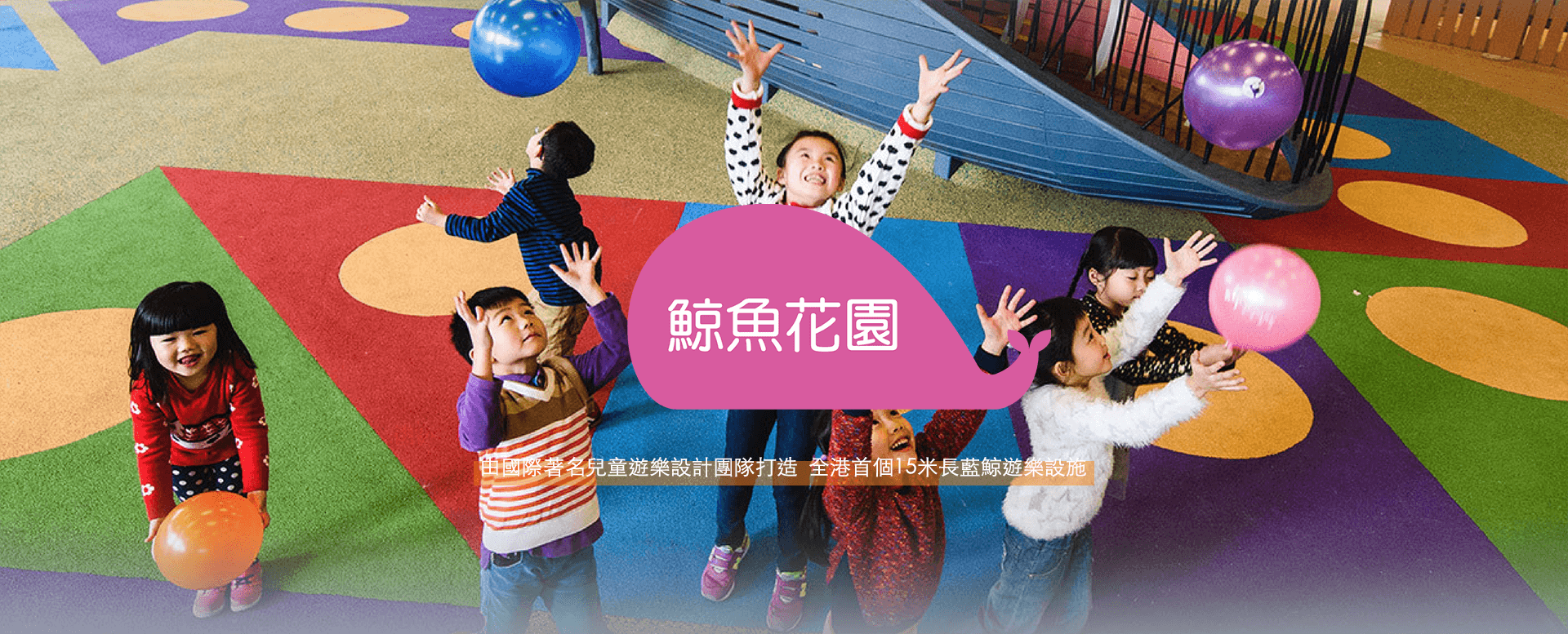 鯨魚花園是與國際著名丹麥遊樂場設計專家Monstrum合作精心打造,集遊樂、音樂、攀爬、歴險等多項智慧發展於一身,15米長、仿照鯨魚真實大小及型態打造的鯨魚玩樂設施為全亞洲最大,小朋友可以盡情於鯨魚大肚子內和身試遊玩,完成各項挑戰之餘,可更訓練不同肢體技巧。